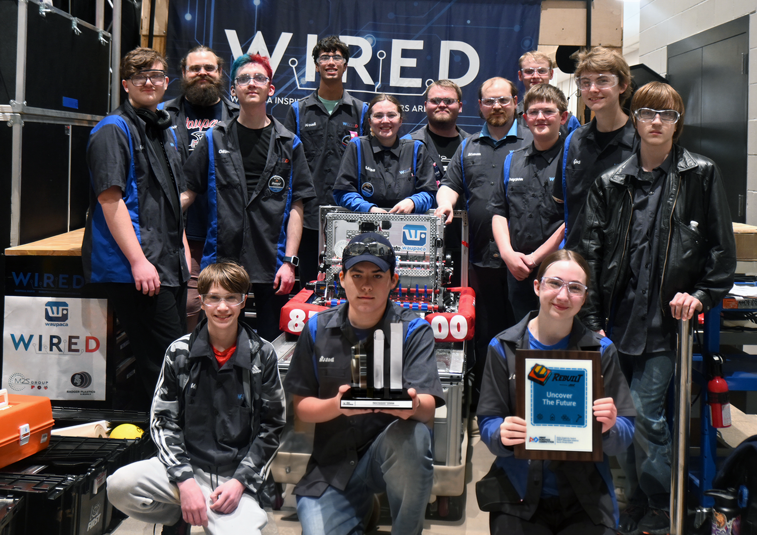 WIRED began in 2016, competing in VEX Robotics, but switched to FRC in the 2021-2022 season. Our team is a group of approximately 20 highly motivated students and 8 mentors located in Waupaca, WI.